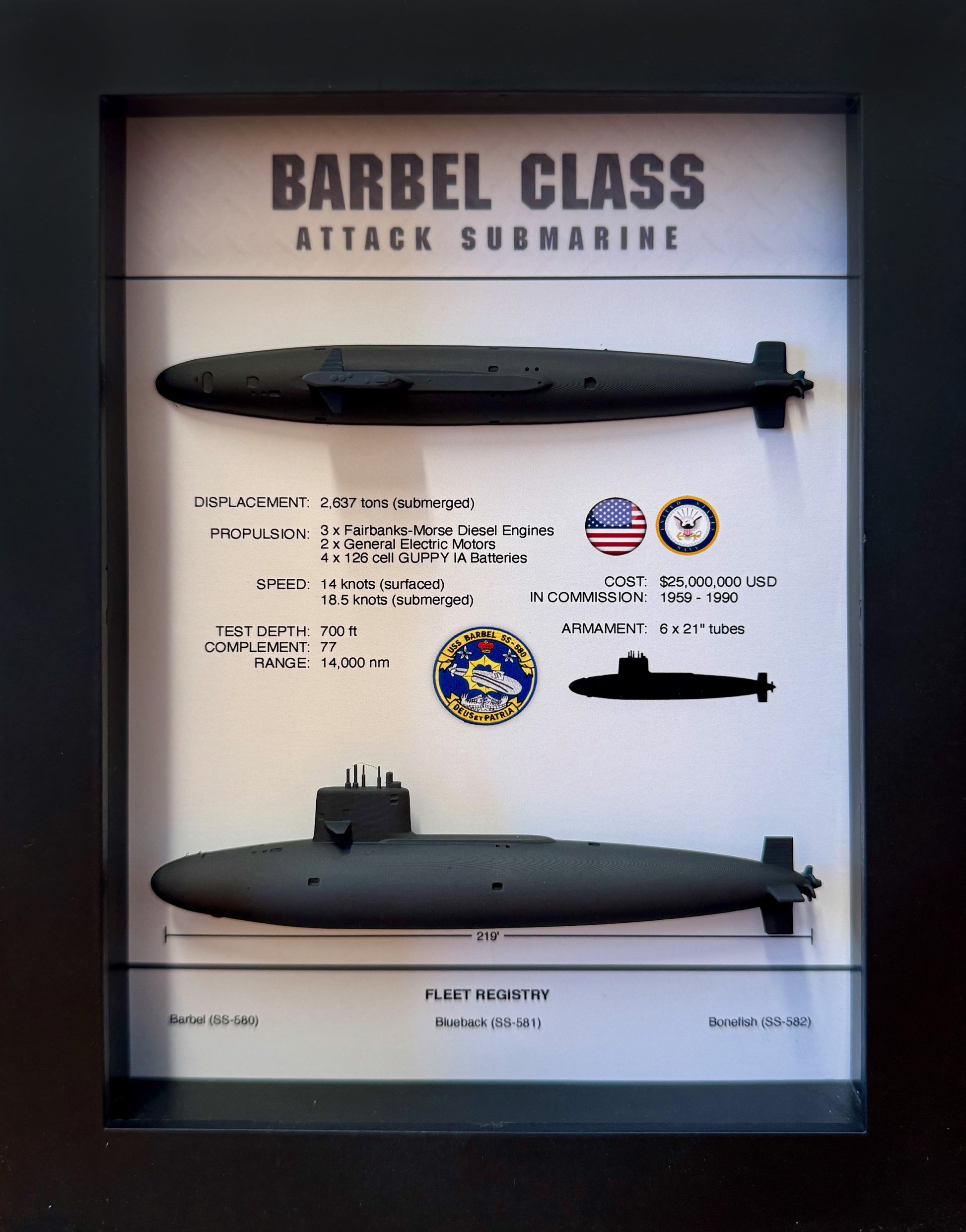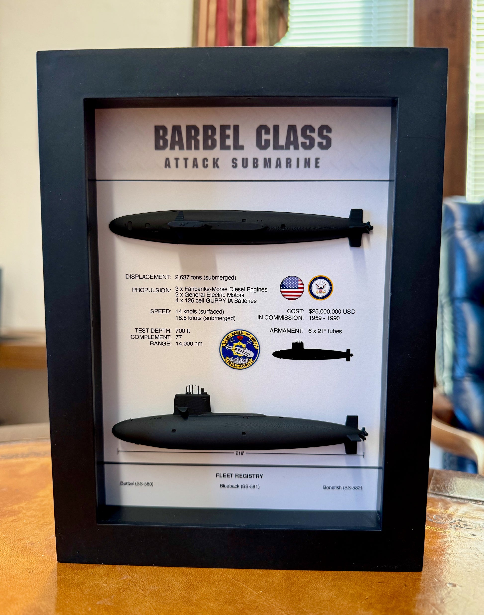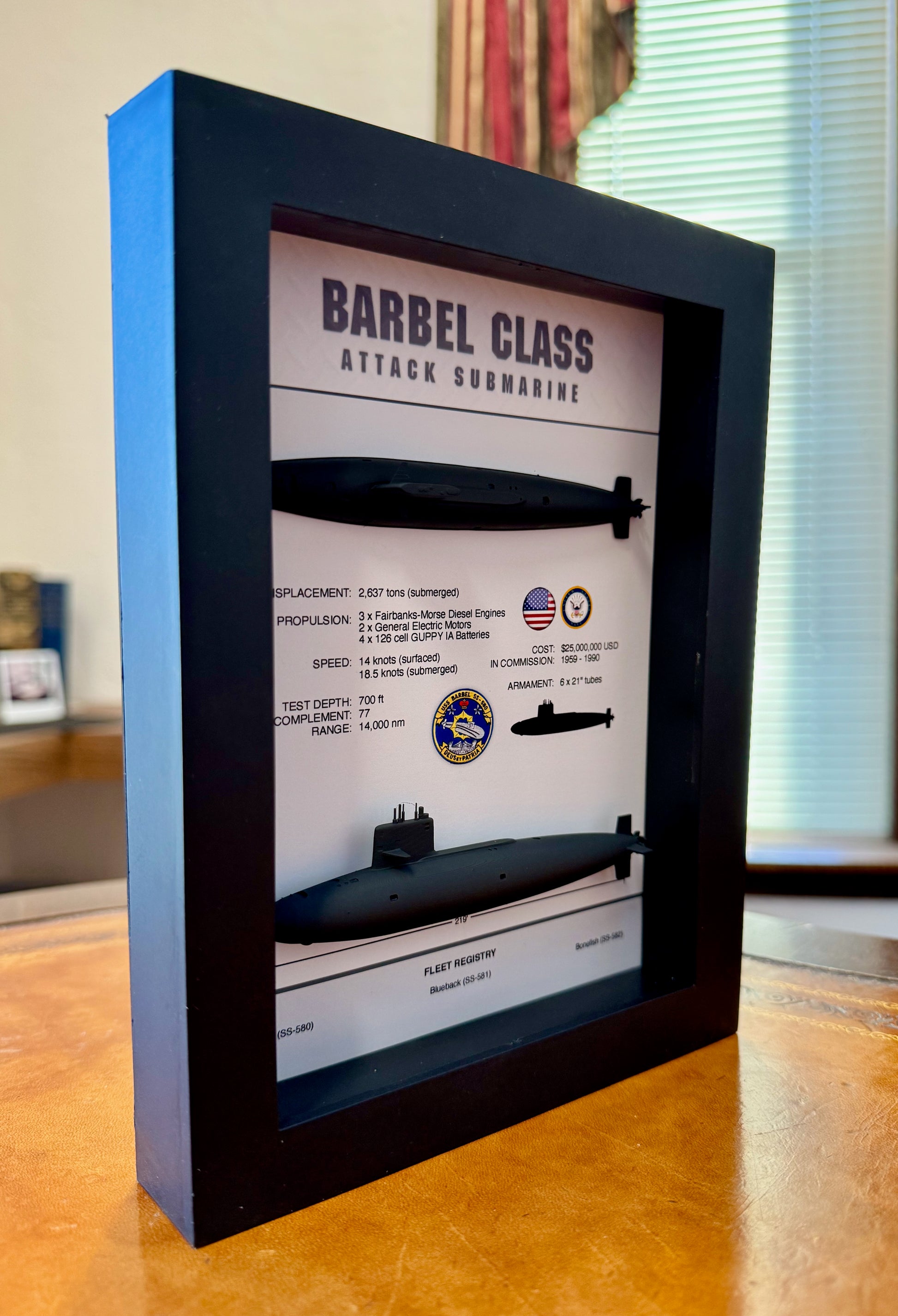 Barbel Class Submarine Memorial Display Shadow Box, 6" x 8", Black