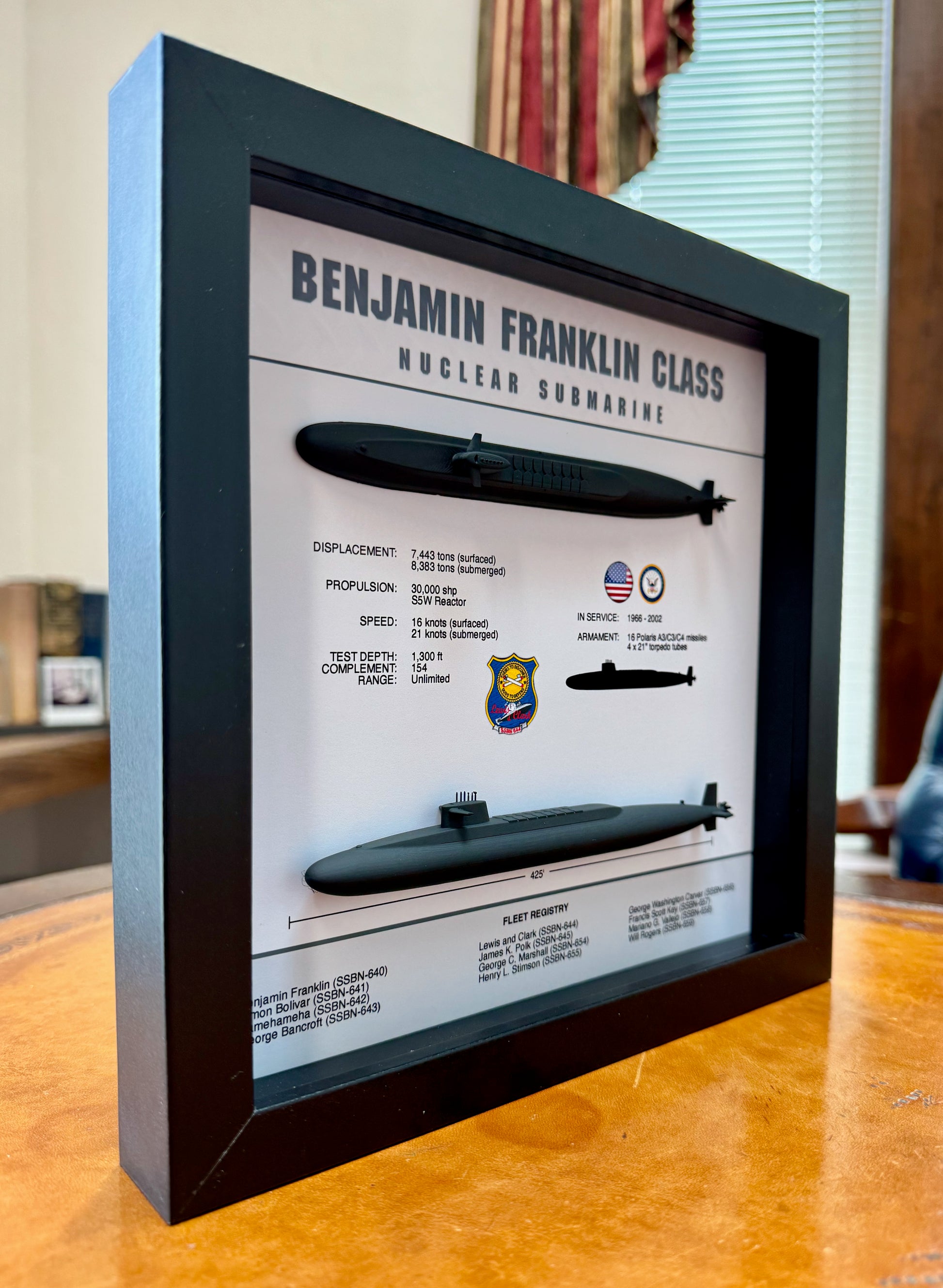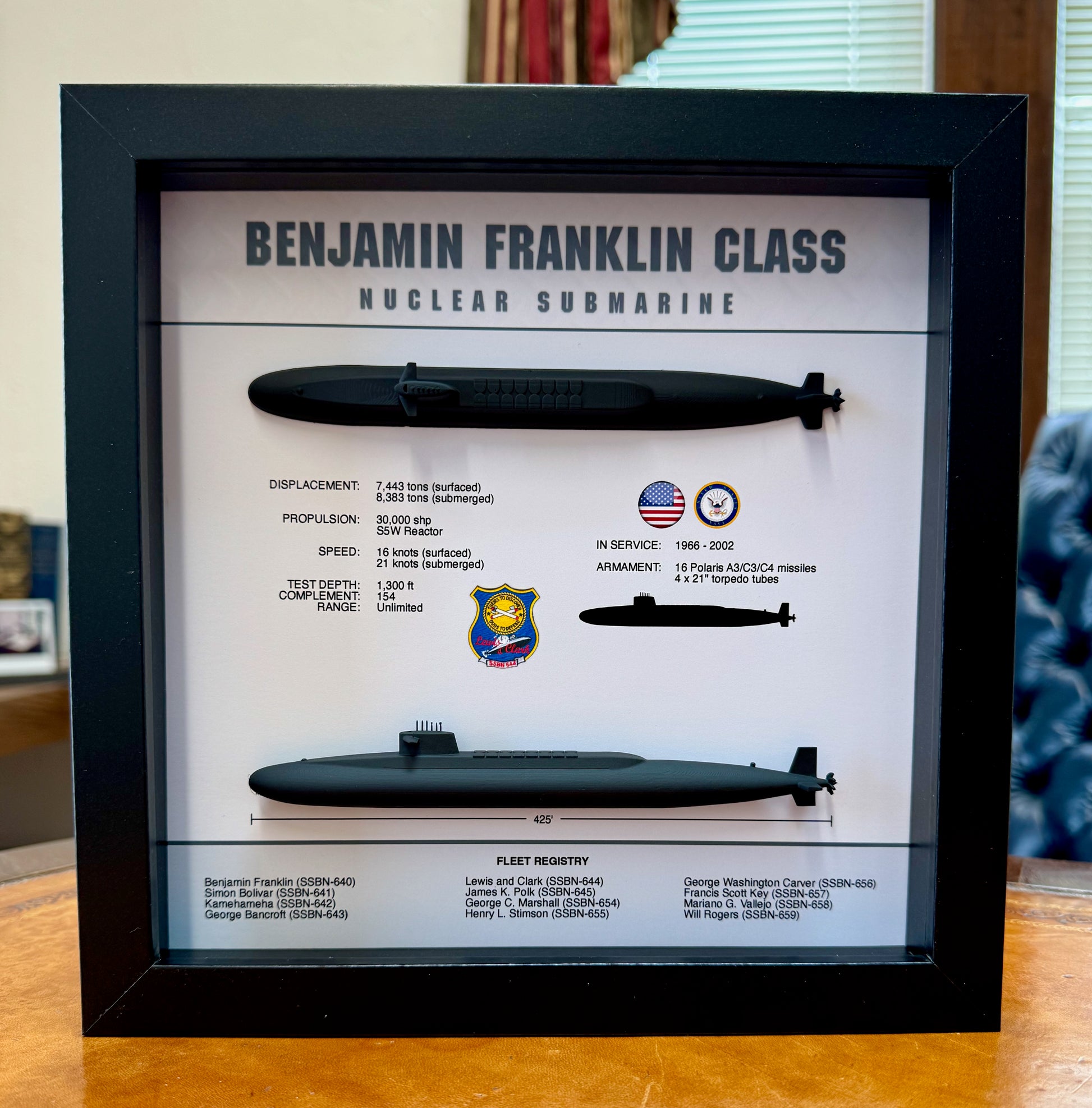Benjamin Franklin Class, Submarine Memorial Display Shadow Box, 9" x 9", Black