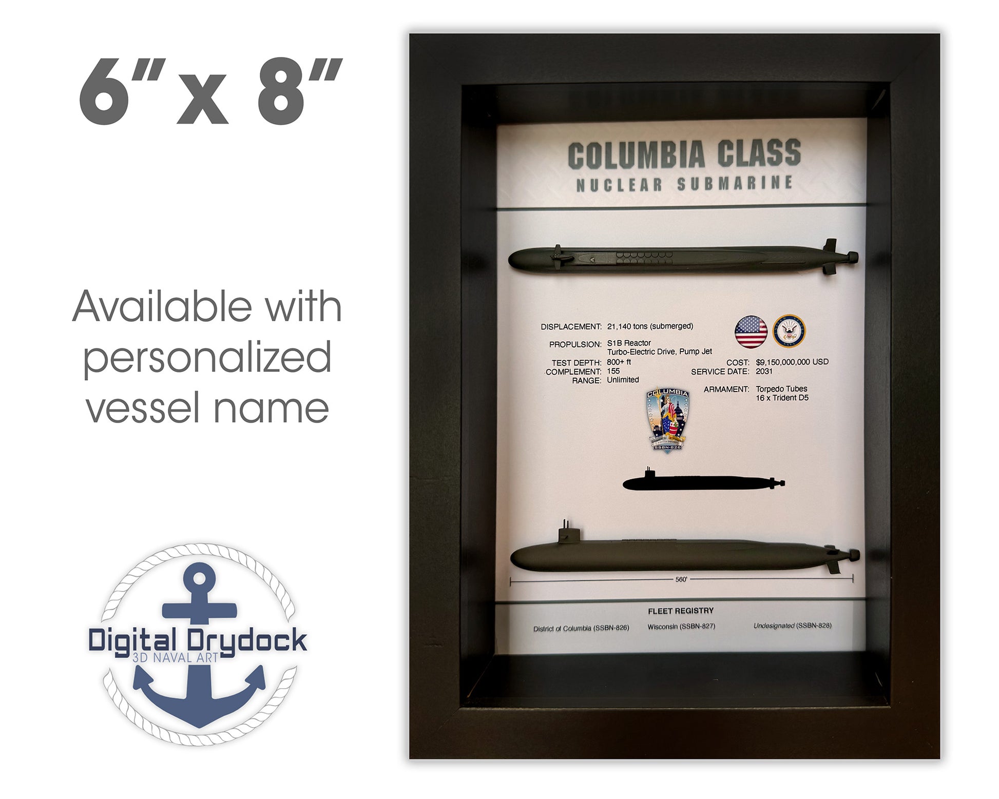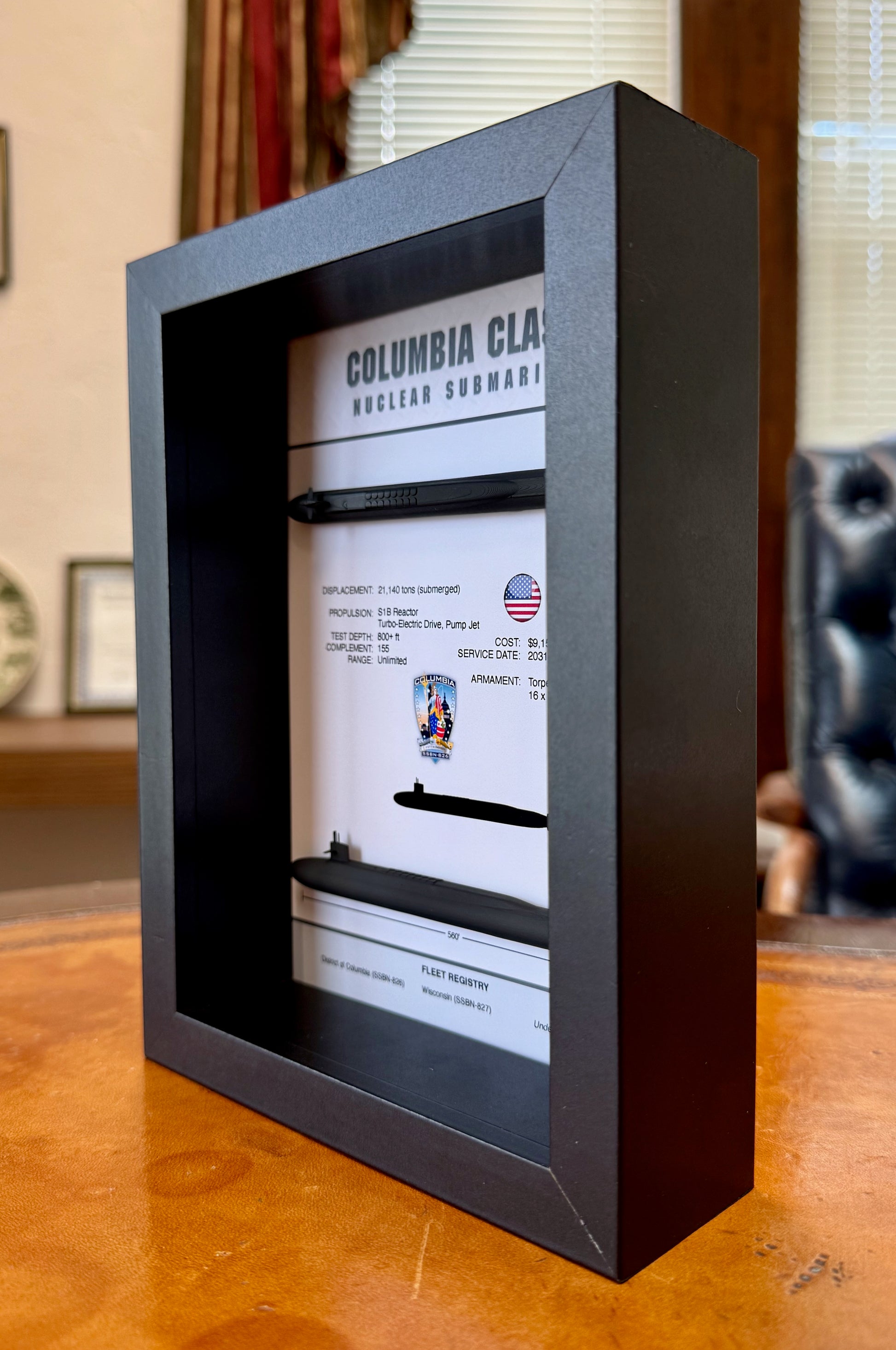 Columbia Class Submarine Memorial Display Shadow Box, 6" x 8", Black