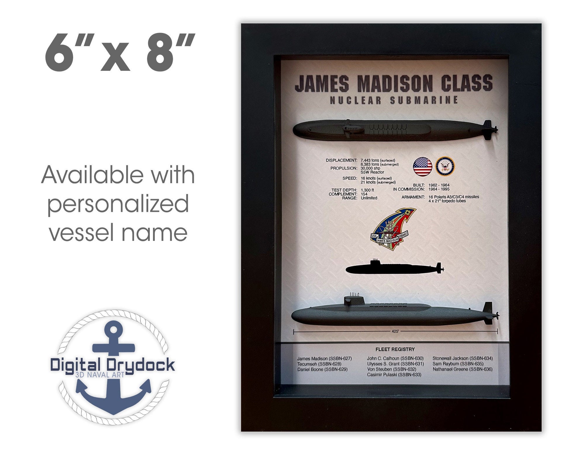 Please note for an additional fee, the display can be customized to a specific vessel within the James Madison Class. The vessel name can be entered in the "Special Instructions" field in the shopping cart during the checkout process.