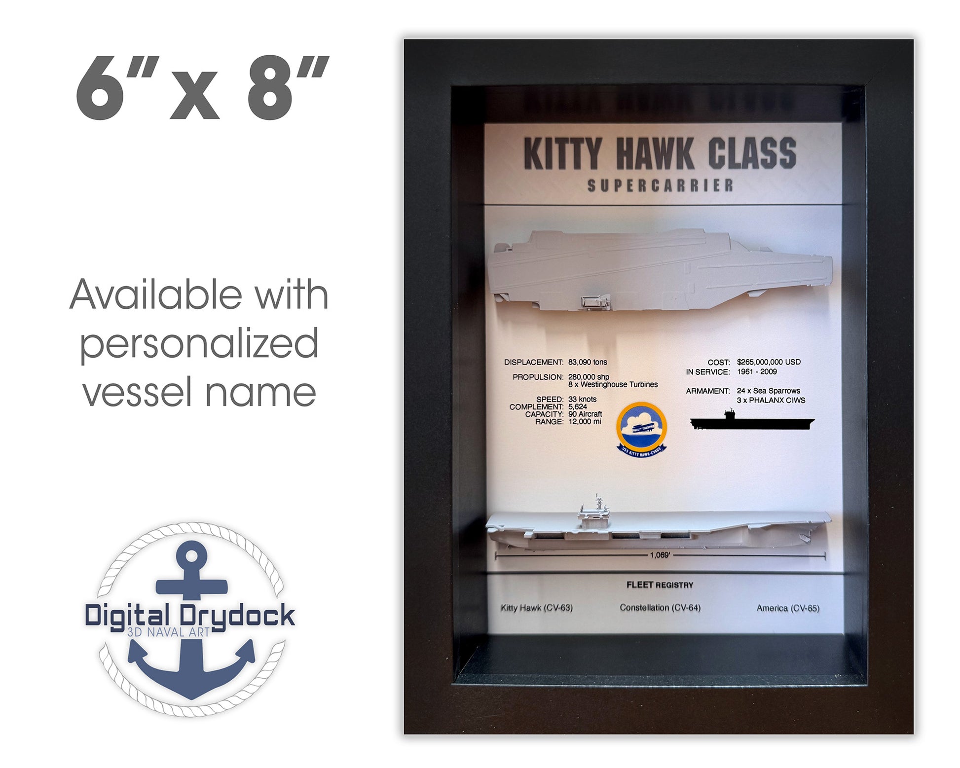 Kitty Hawk Class Carrier Display Shadow Box, CV-63, 6" x 8"