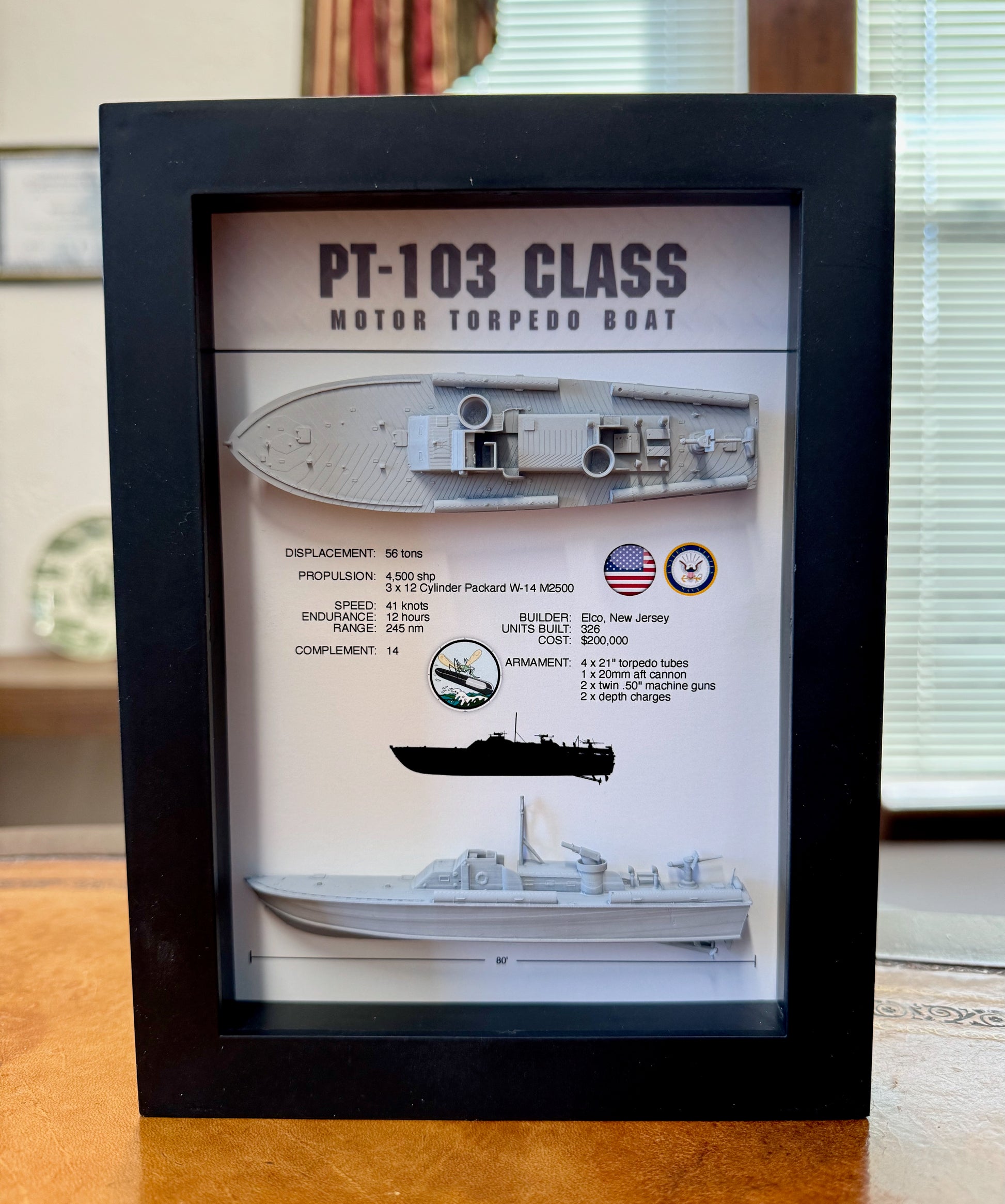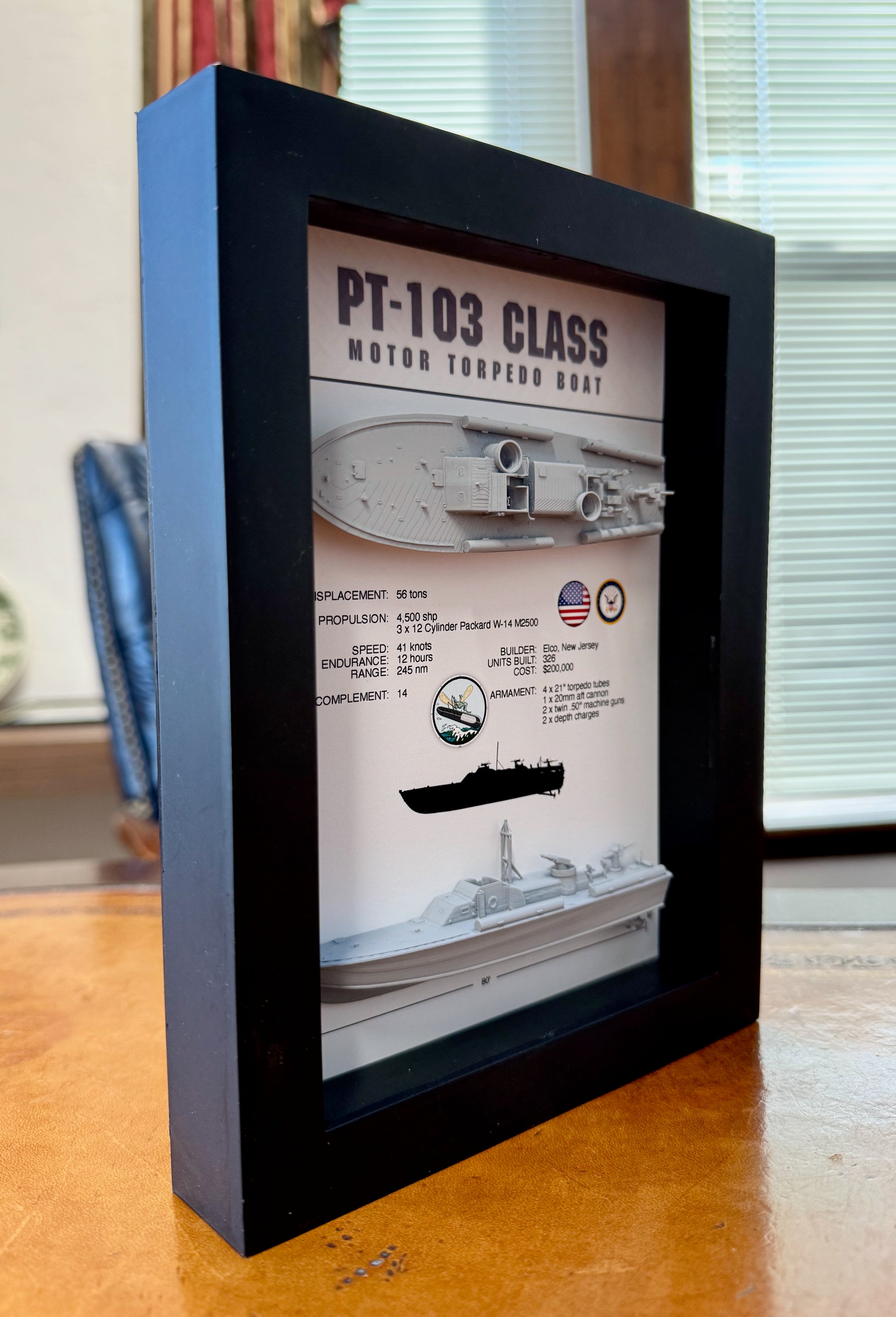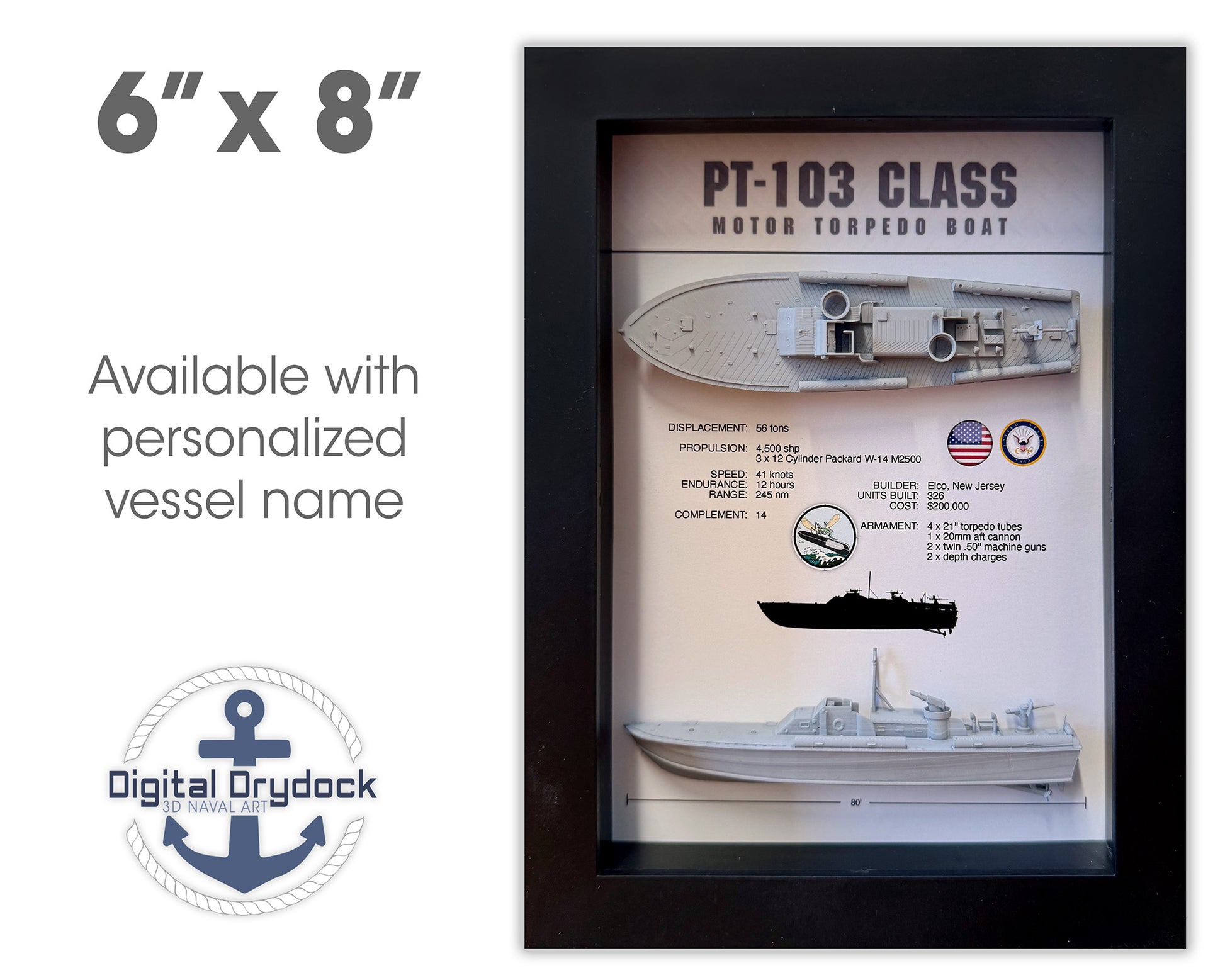 Whether you're a naval history enthusiast or simply appreciate the beauty of naval engineering, this shadow box is a fascinating addition to your collection. Experience the legacy of this iconic patrol boat in stunning detail, and relive a piece of naval history with this unique frame.