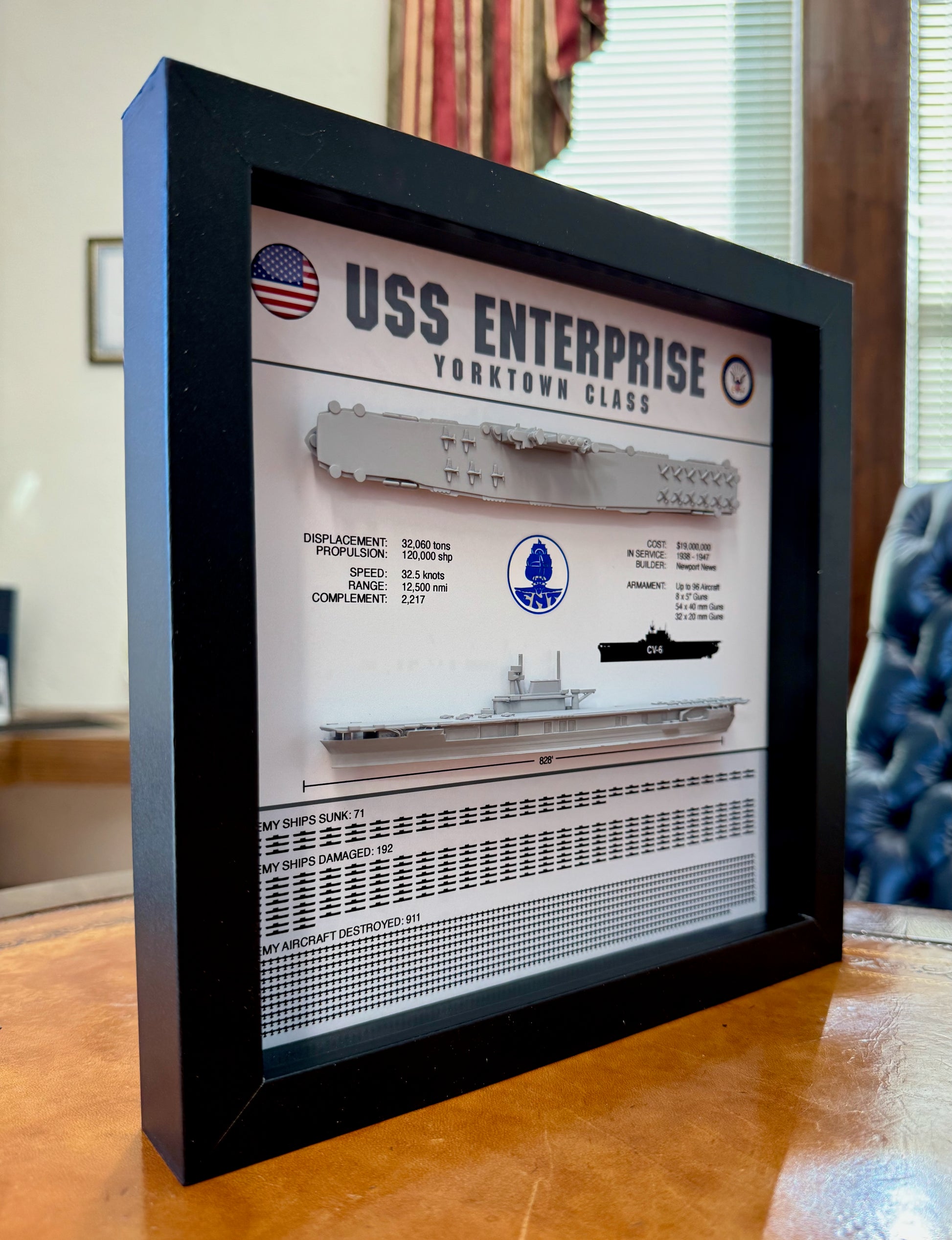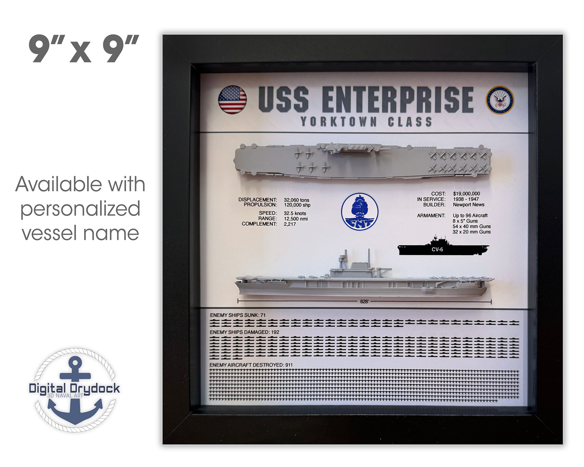 USS Enterprise Memorial Display Shadow Box, CV-6, 9" x 9", Black