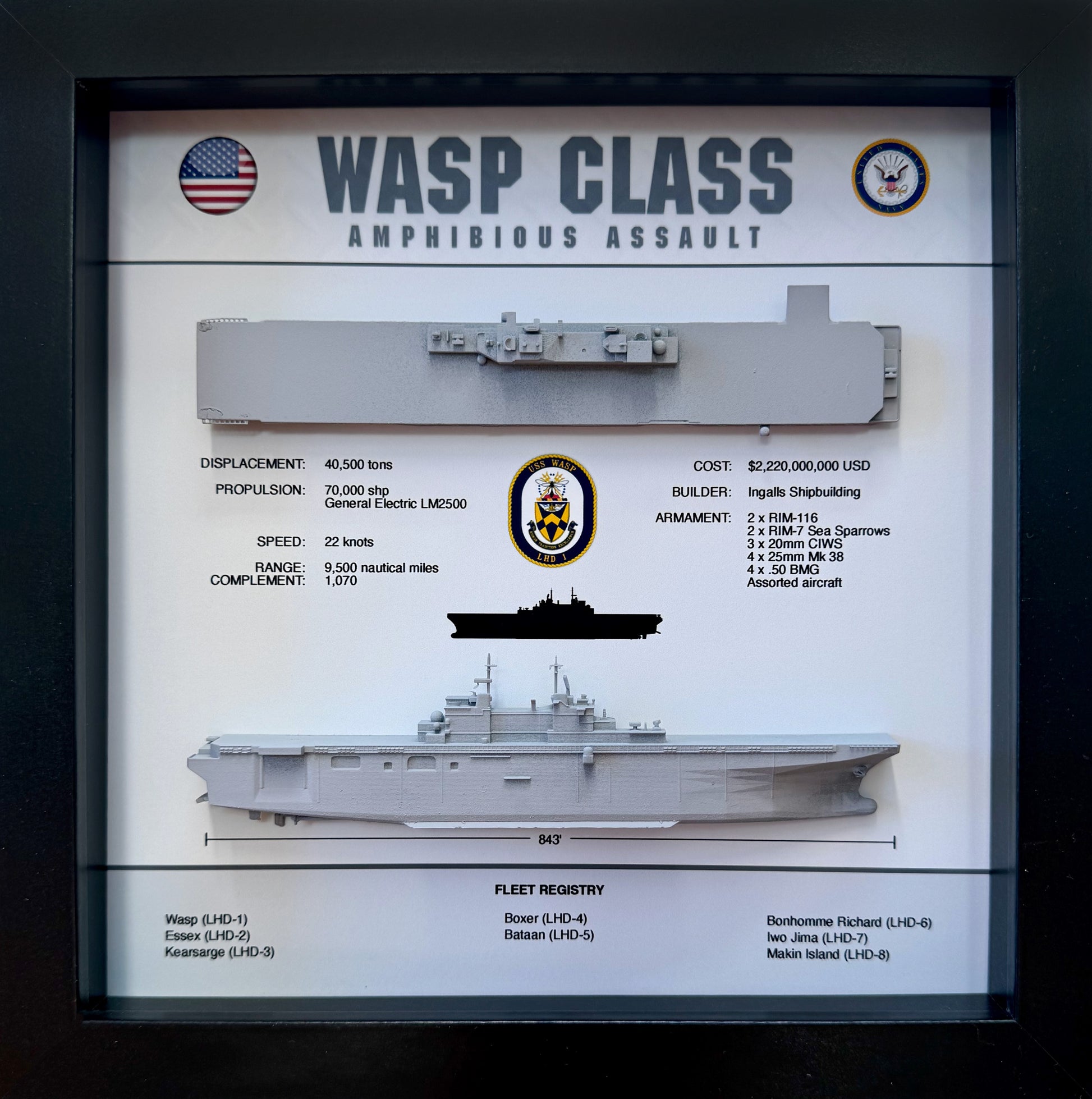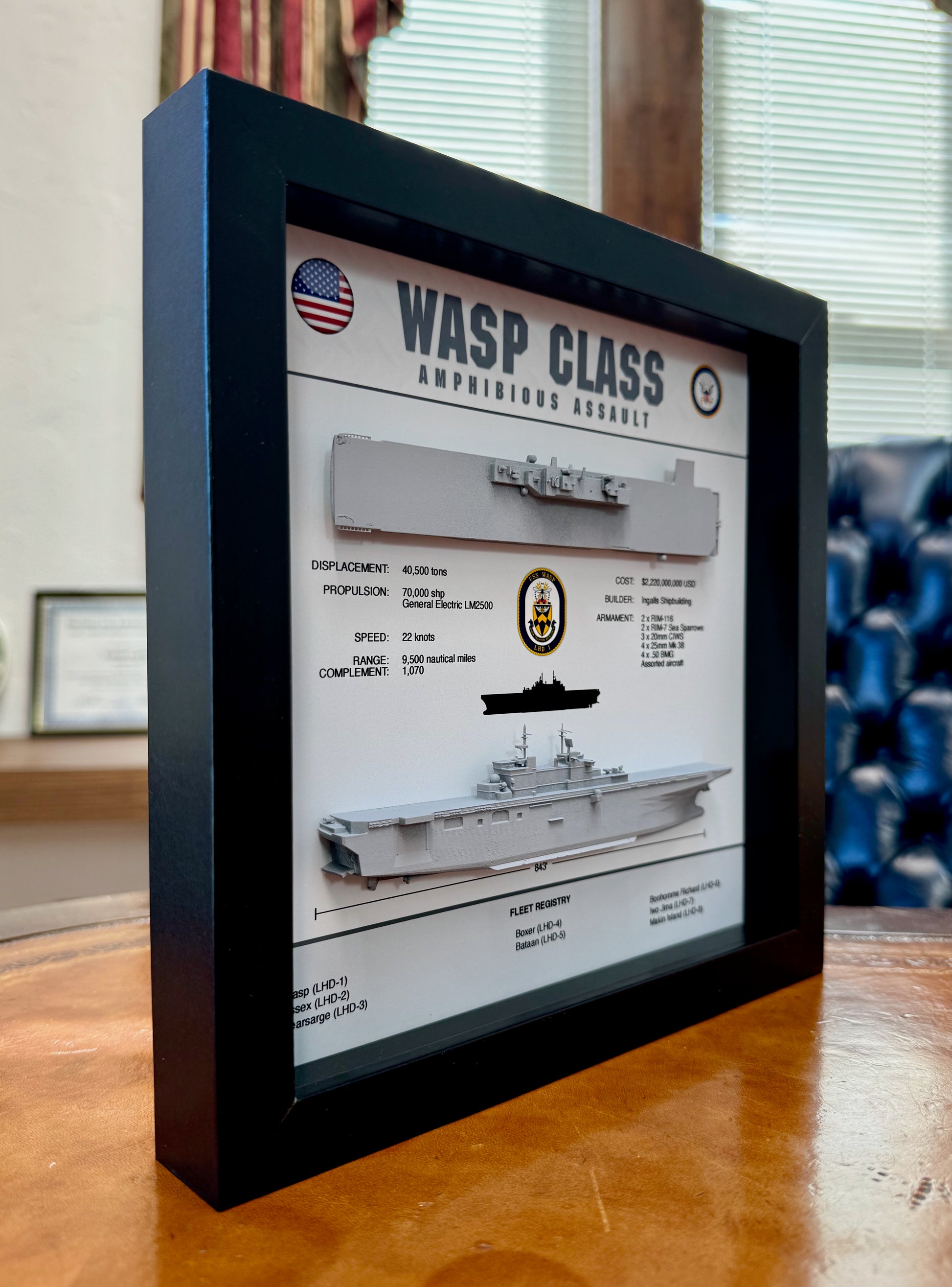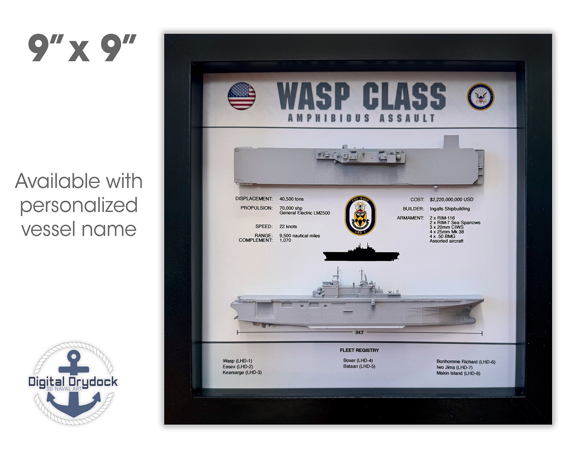Wasp Class Amphibious Assault Vessel Memorial Display Shadow Box, 9" x 9", Black